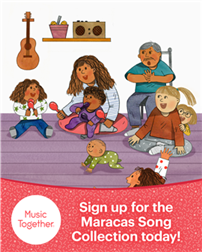 Your children will love the energy of this collection! Songs include the American children’s song, “Ha Ha This a-Way” made famous by legendary blues guitarist Huddle Ledbetter (aka “Lead Belly”), the enchantingly rhythmic "Al citrón," based on a traditional Latin American children's game, and "’Bout My Friends," sure to have everyone dancing to its funky blues. In addition to your weekly classes, your tuition includes recordings and materials for you to use at home, including an illustrated songbook and access to the songs through the Music Together® app.